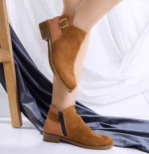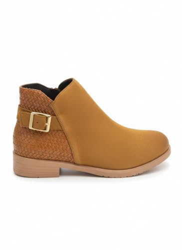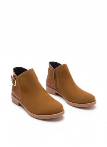 Life Stylish - بوت بطول الكاحل مسطح من جلد الشمواه مع سوستة، G-29