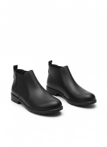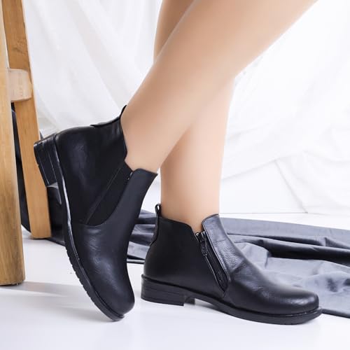 Life Stylish - بوت بطول الكاحل مسطح من الجلد مع استك G-30