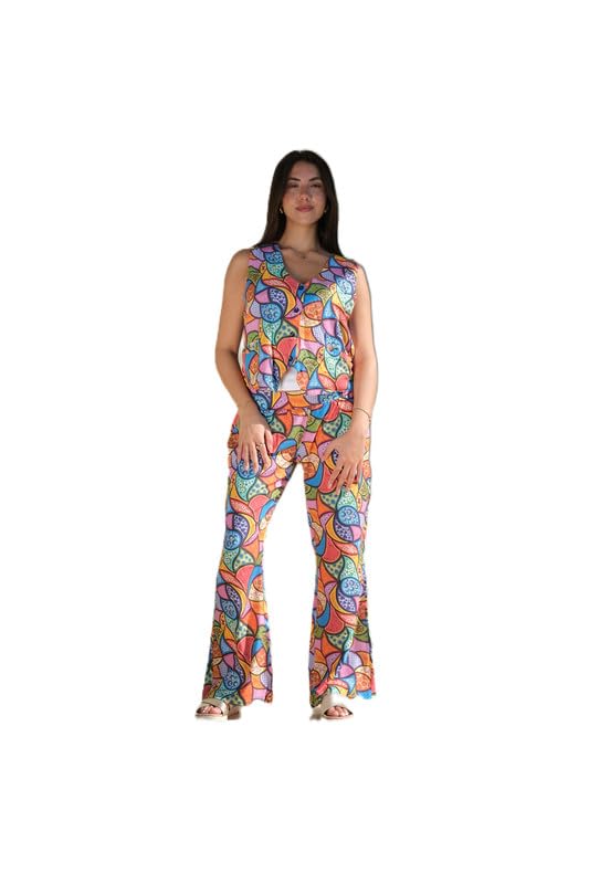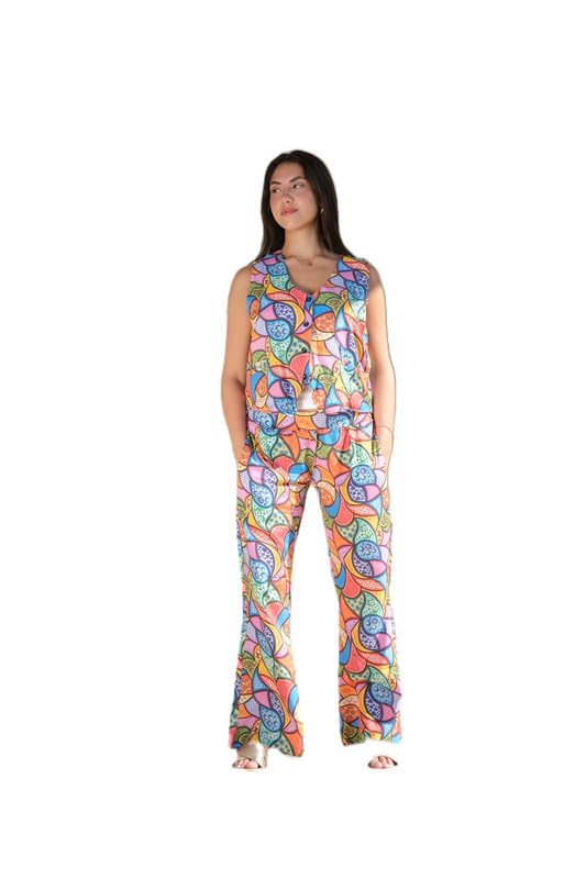 Antika Cotton - بنطلون للنساء من انتيكا كوتون - بنطلون من القطن المصري الفاخر للنساء - بنطلون فاخر للنساء بالوان استوائية - مقاس L