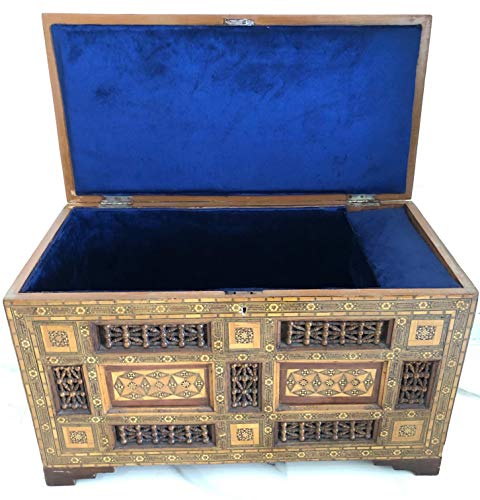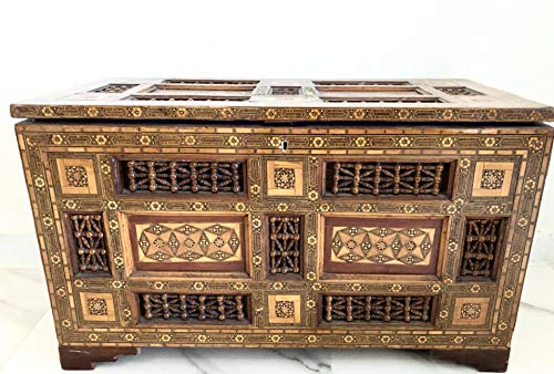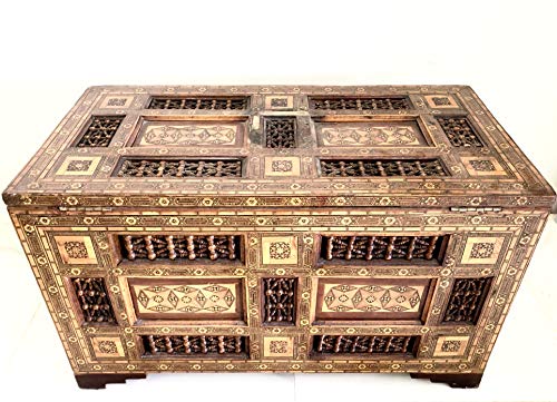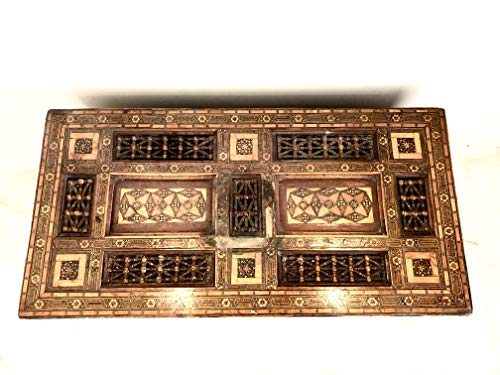 - صندوق مصري عتيق من القرن الثامن عشر إلى التاسع عشر مرصع بزخرفة خشبية وعرق اللؤلؤ.
