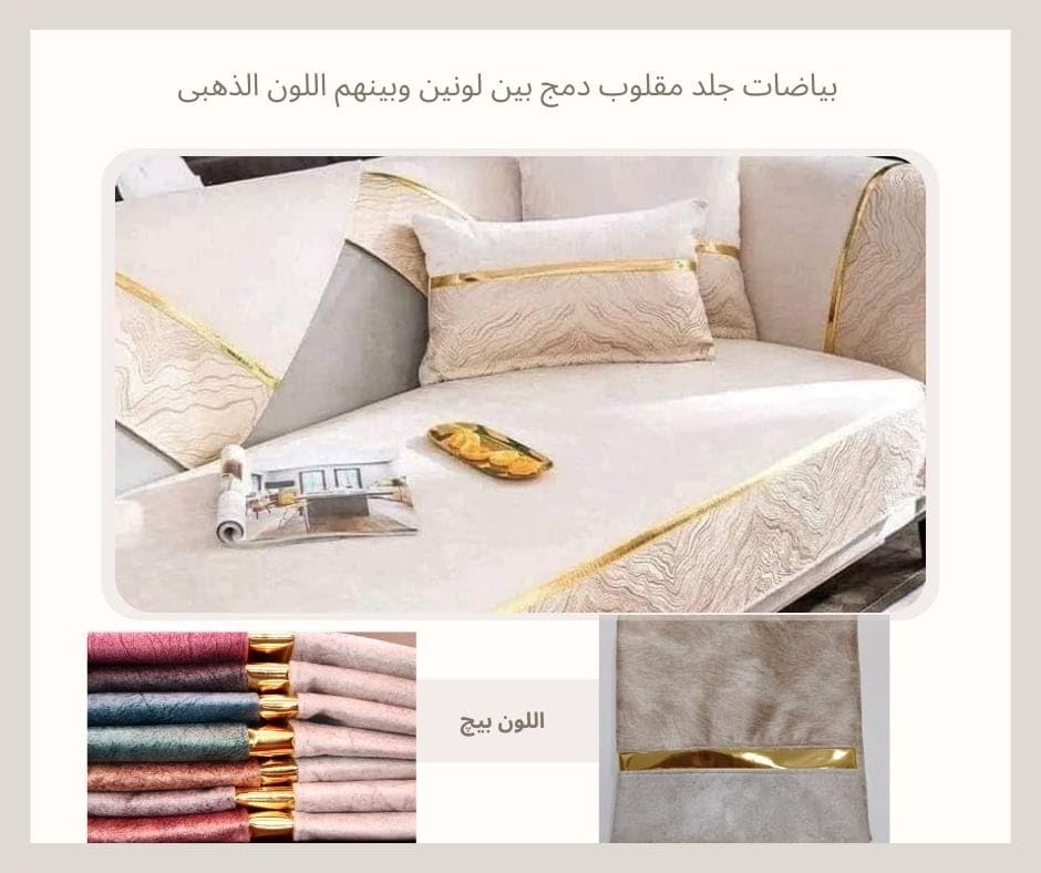 Generic - طقم بياضات انتريه جلد مقلوب (بيج)