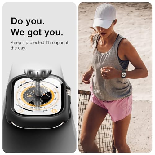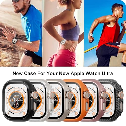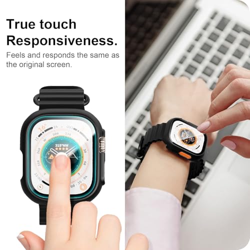 - [الموديل المتوافق] تم تصميم حافظة الملحقات هذه لساعة ابل الترا 2 2024 / الترا 2 / الترا 49 ملم. يغطي واقي الشاشة المصنوع من الزجاج المقوى شاشة ساعة ابل والحواف المنحنية لحماية كاملة 360 درجة لساعة ابل الخاصة بك
