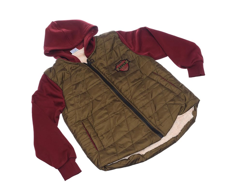 Apple Kids - جاكيت مقاوم للماء للاولاد من ابل مع جيوب مفتوحة وبطانة من الصوف وغطاء راس واكمام بالوان مختلفة