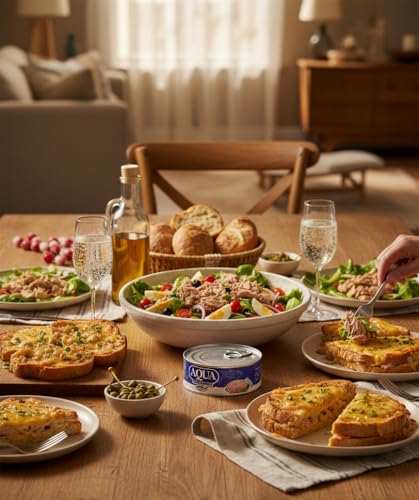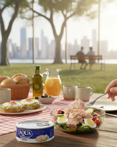 - جودة فاخرة: توفر لحم التونة الخفيفة من اكوا بريميوم قطع تونة طرية وقشرية مثالية للسلطات والسندويشات وأطباق المعكرونة