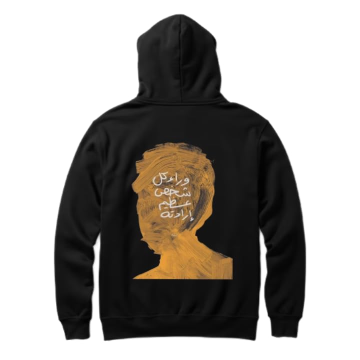 Generic - سويت شيرت بغطاء للرأس بتصميم الخط العربي من الخلف بلون اسود
