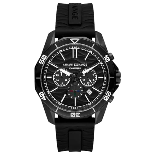 Armani Exchange - ساعة يد من الفولاذ المقاوم للصدأ والسيليكون للرجال من ارماني اكستجينج، رمادي وأسود 44 ملم 1961