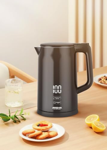 Arshia - غلاية كهربائية من أرشيا باللون الأسود، مصنوعة من البلاستيك، مع تشغيل بلمسة واحدة وجسم بارد وتحكم في درجة الحرارة، سعة 1.7 لتر