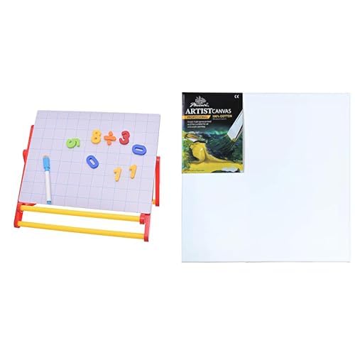Generic - مجموعة أدوات فنية: حامل لسطح الطاولة مزود ببطاقات أرقام تعليمية وملصقات مغناطيسية ولوحة قماشية فنية من القطن 100% للرسم بألوان الأكريليك، مقاس 50 × 50 سم