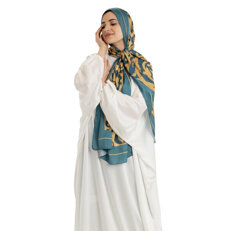 ART MOOD HOME - اسدال صلاة من الساتان من ارت مود هوم - اسدال الهداية بلون ازرق مخضر وذهبي - اسدال ابيض مقاس واحد فقط