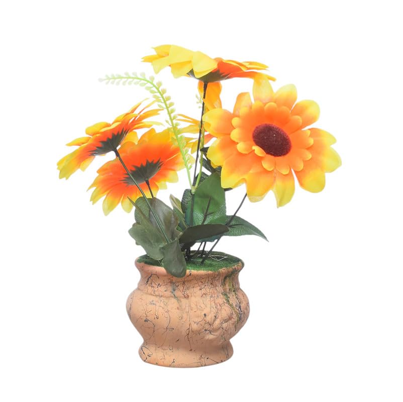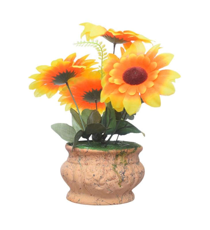 Generic - فازة بزهور عباد شمس صناعية، فازة من الفخار لديكور المنزل - متعددة الألوان
