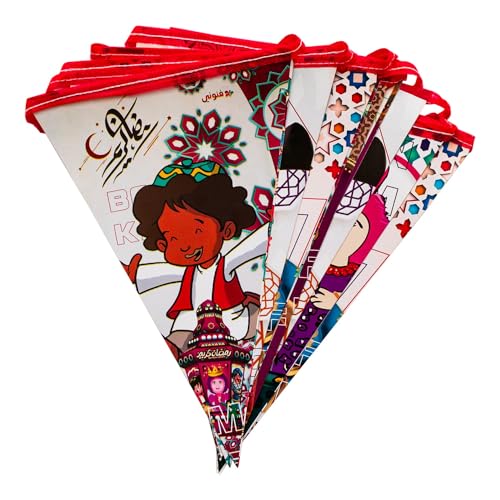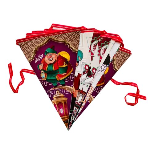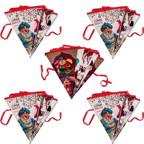 artistic - زينه رمضان - عروض فنوني 5 قطع فروعات مختلفه الاشكال ورق طباعة عاليه الجوده حبل قوي حجم كبير طول 4 متر لكل فرع - اشكال جميله ومبهجه للطفل مثلث متعدد الألوان