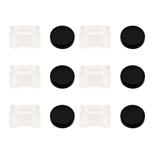 artistic - 6 قطع برطمان بلاستيك لون ابيض شفاف مقاس 100 مل - قطر 6.3 سم غطاء الوان مختلفة و طبه - فواغ عالي الجودة وصحيه لاعادة التعبئة تخزين - من ارتيستيك اسود