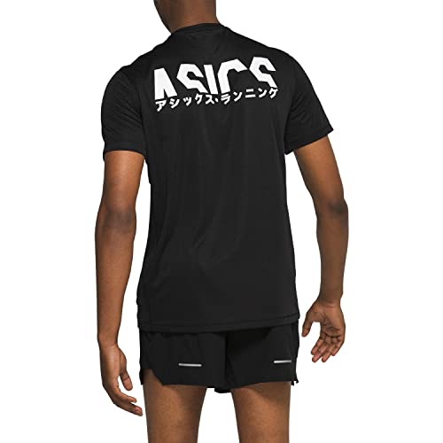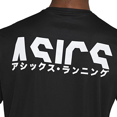 ASICS - تي شيرت كاتاكانا باكمام قصيرة للرجال، لون اسود، مقاس XL
