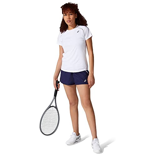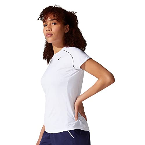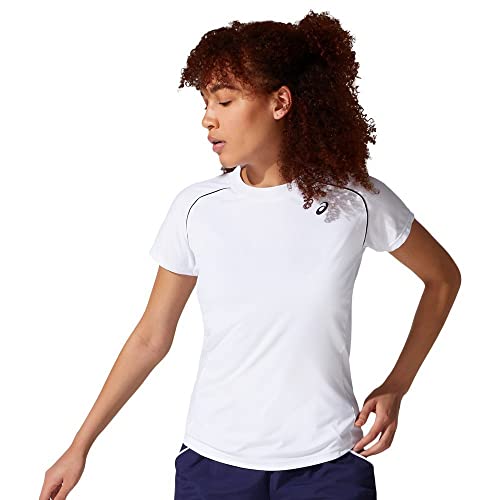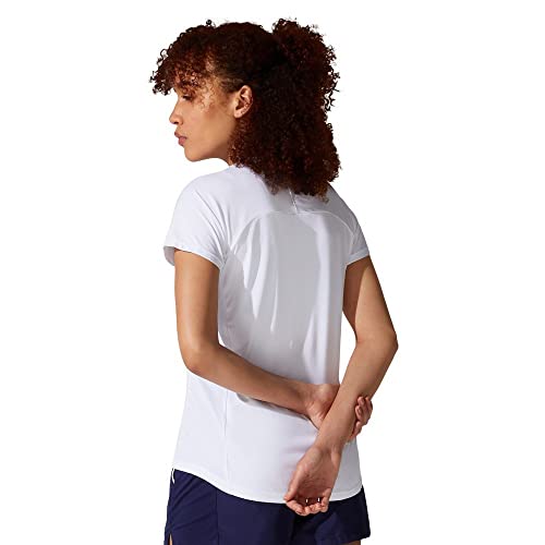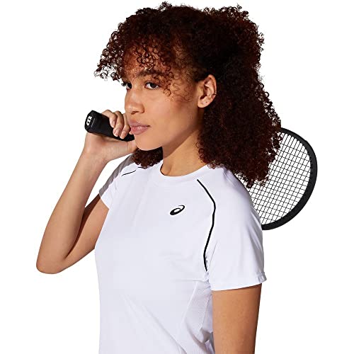 ASICS - اسيكس تي شيرت كورت بايبينغ للنساء، أبيض وأسود، XL