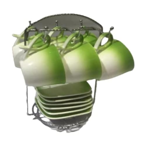 Generic - طقم فنجان قهوة على استاند 6 فنجال اطباق بوليستر أخضر