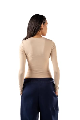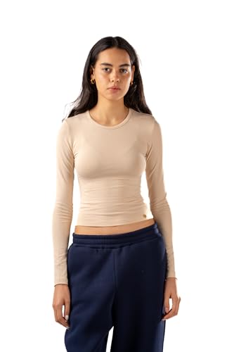 ASTK - تيشرت أساسي بأكمام طويلة بتصميم حديث للنساء من ايه اس تي كيه
