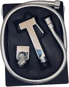 Generic - شطاف محمول باليد .للوضوء والنظافة الشخصية (طقم شطاف فضي مع راس مربع مع لي طوله130 سم)