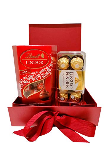 Auris Glocal Trading - علبة هدايا تحتوي على 200 جم شوكولاتة ليندور ليندت و200 جم فيريرو روشيه، مناسبة للرجال والنساء في عيد الفصح أو أعياد الميلاد أو الذكرى السنوية من اوريس جلوبال تريدينج، ريد هامبر (أحمر)