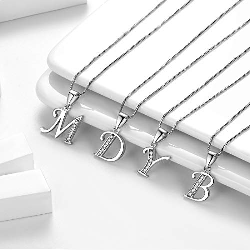 Aurora Tears - Aurora Tears Letter Necklace Initial 925 Sterling Silver Alphabet Pendant Crystal Name Gift Women Cubic Zirconia Jewelry