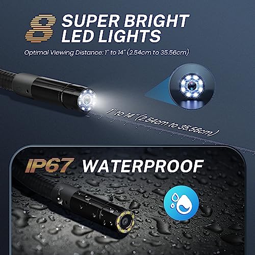 - 【كشف مرن】يعمل MV108 حول السيارة: كابل 2.54 سم إلى 35.56 سم (1 بوصة إلى 14 بوصة) طويل ومرن بما يكفي للبقاء في موضعه بشكل مثالي. كاميرا فائقة الوضوح (تصوير 640 × 480 8.5 ملم) محاطة بمصابيح LED ساطعة توفر صورًا واضحة للغاية. 3 ملحقات رأس عملية (مغناطيس، غطاء حية، مرآة) تهدف إلى التعامل مع أي أحداث غير متوقعة وصعبة.