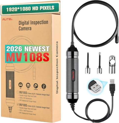 Autel - كاميرا فحص رقمية MV108S من اوتيل ماكسي فيديو، منظار داخلي صناعي HD 2024 1920x1080P، كاميرا بوريسكوب USB مقاومة للماء 8.5 ملم، كاميرا ثعبان مرنة لأدوات اوتيل والكمبيوتر، أحدث من MV108 MV105 MV105S