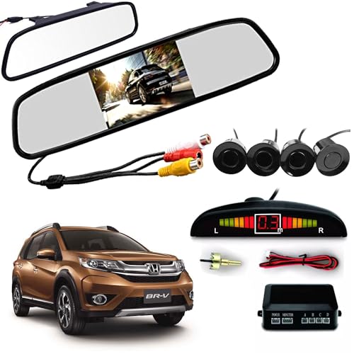 Auto Pearl - نظام فيديو لمراية صالون السيارة بشاشة تي اف تي ال سي دي مقاس 4.3 بوصة 16.5 ملم لكاميرا HD العكسية و4 مستشعرات ركن السيارات من اوتو بيرل، لون أسود