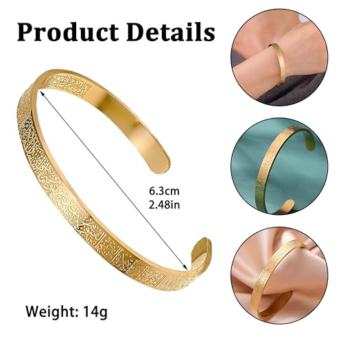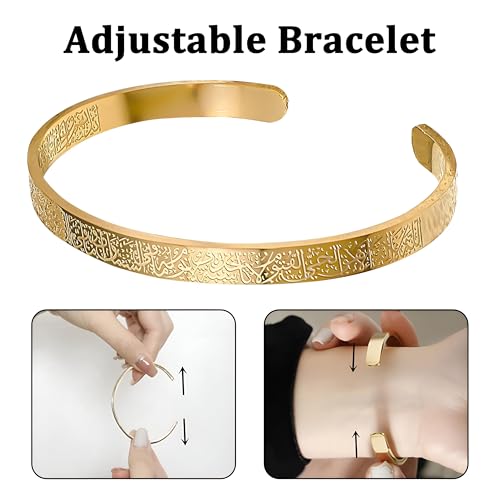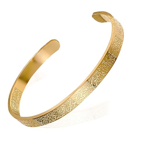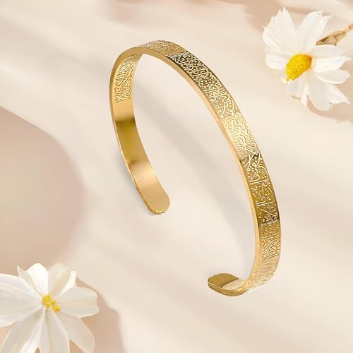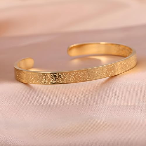 Generic - إسورة للجنسين، مصنوعة من المعدن، بلون ذهبي وتصميم عصري إسلامي مع نقش آية الكرسي، مقاس موحد