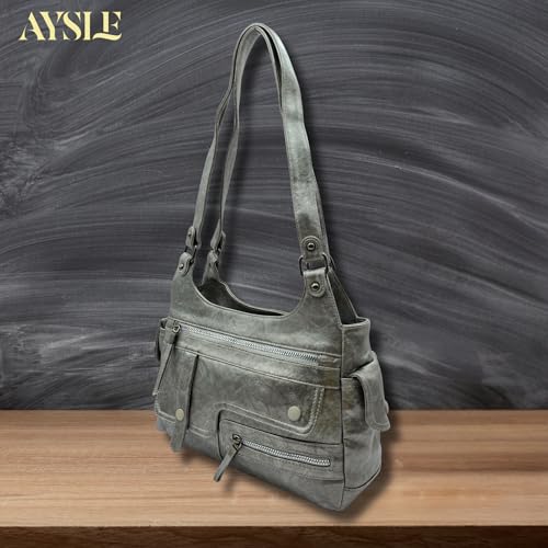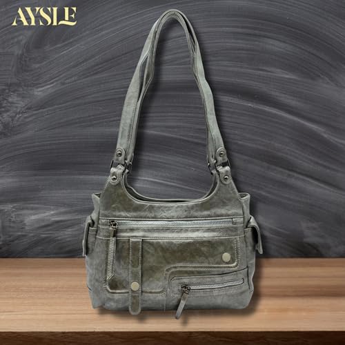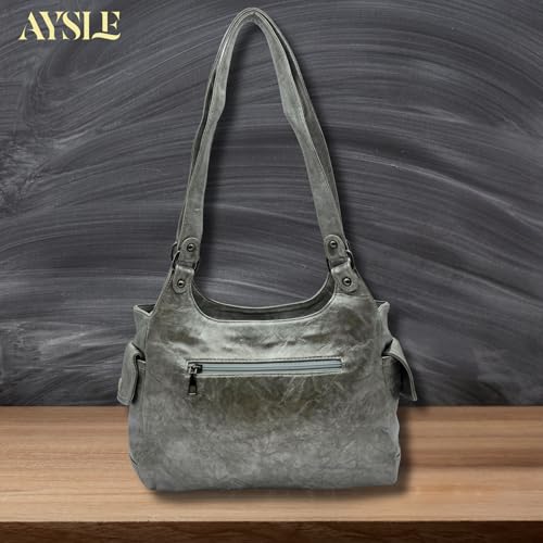 AYSLE - شنطة كتف بمقبض علوي من الجلد الطبيعي للنساء من ايسل 1616 - تصميم بسيط وانيق، اكسسوارات معدنية فاخرة، 23 × 38 × 14 سم