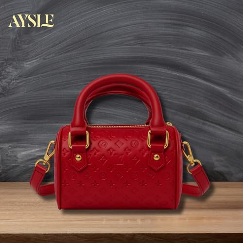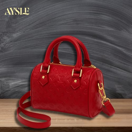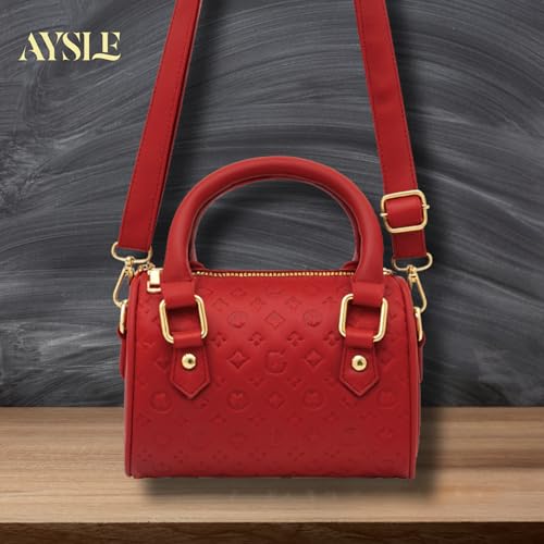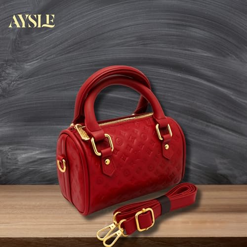 AYSLE - شنطة كتف للنساء، شنطة كروس، شنطة يد بمقبض علوي من الجلد الطبيعي مزينة بإكسسوارات بلون ذهبي وحزام قابل للتعديل بتصميم خفيف الوزن من ايسل، متوفرة بـ 12 لون، مقاس 13×20×11 سم، موديل 1625