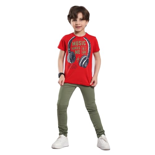 Azoro Spain - تيشرت برقبة دائرية للاطفال من ازورو اسبانيا (موسيقى) - احمر