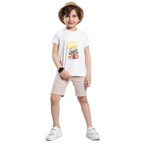 Azoro Spain - تيشرت برقبة دائرية للاطفال من ازرو اسبانيا (ناروتو) - بيج فاتح
