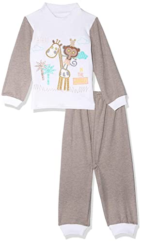 Baby Cadeau - بيجامة قطن توب لونين بخياطة امامية واكمام طويلة بأطراف مختلفة اللون مع بنطلون للاطفال من بيبي كادو - ابيض وكافيه، 0 - 3 شهور