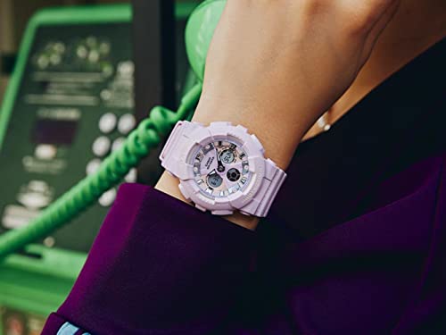 Casio - ساعة انالوج رقمية للنساء من بيبي جي بمينا أبيض وسوار من الراتنج BA-130WP-6ADR