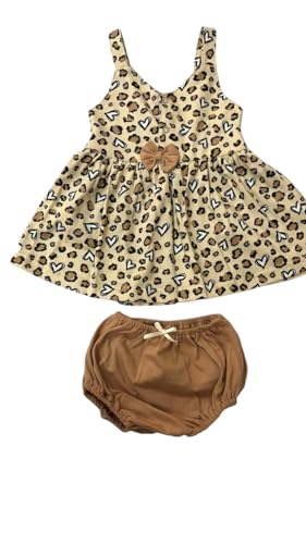 Generic - طقم فستان بطبعة جلد الفهد للفتيات الصغيرات بنمط قلوب وتفاصيل فيونكة وسروال، طقم من قطعتين