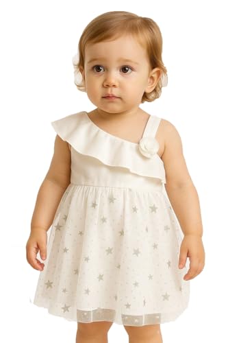 Generic - فستان للبنات الصغيرات أنيق بكتف واحد من الساتان مع جيبة من التول اللامع بنقشة النجوم، لحفلات الأطفال الصغار من عمر 3 أشهر حتى 4 سنوات (توماس كيدز اند سبليندور)