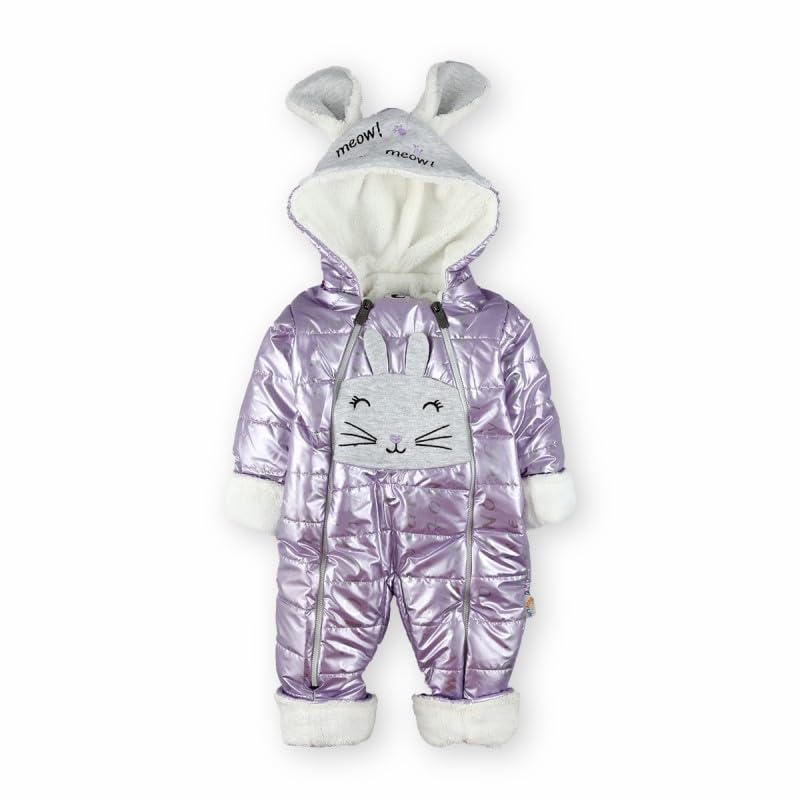 Generic - سالوبيت شتوي للبنات الصغيرات بغطاء رأس على شكل أذني أرنب، لون أرجواني ميتاليك، مقاس مناسب لعمر من 9 إلى 12 شهرًا