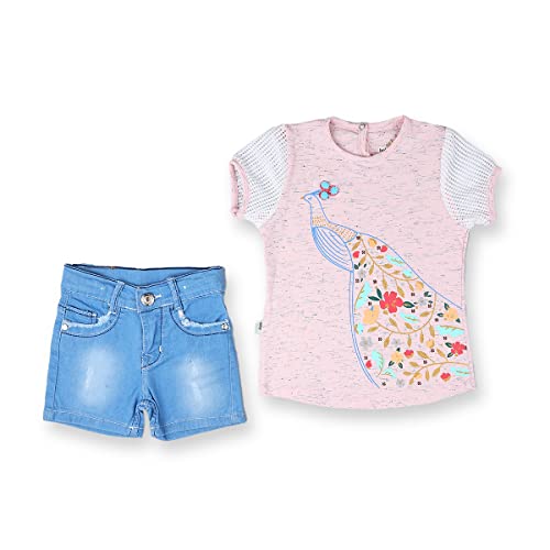 Generic - شورت جينز وتيشرت للبنات الصغيرات بعمر سنتين فما فوق - بينك