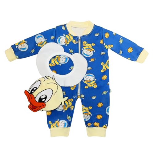 Baby Shoora - سالوبيت بكباسين باكمام طويلة مع مريلة بطبعة بط واكمام طويلة للاولاد (عبوة من قطعة واحدة)