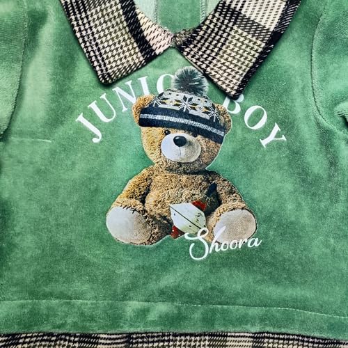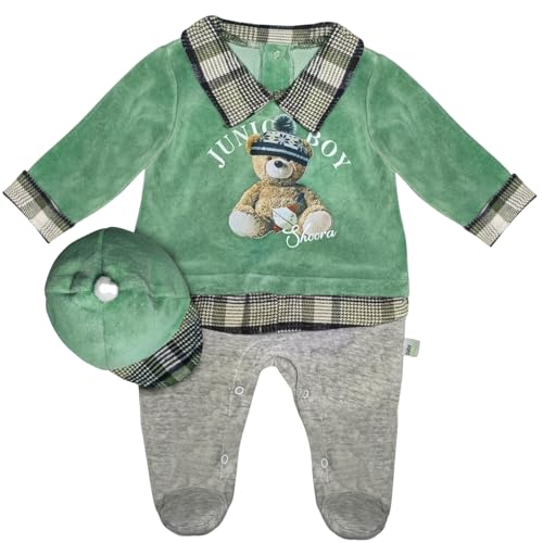 Baby Shoora - طقم سالوبيت بكباسين وأكمام طويلة وطاقية بطباعة دب للأولاد من بيبي شورا من قطعتين (عبوة واحدة)
