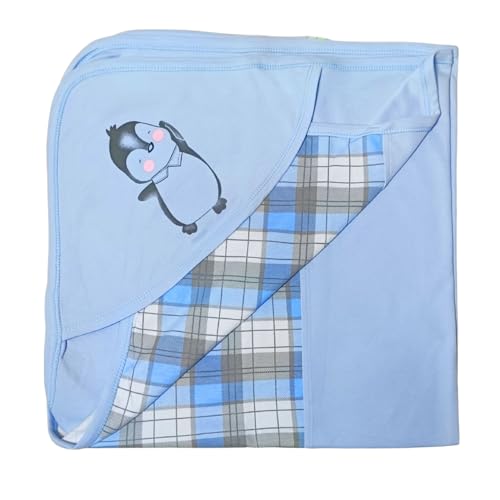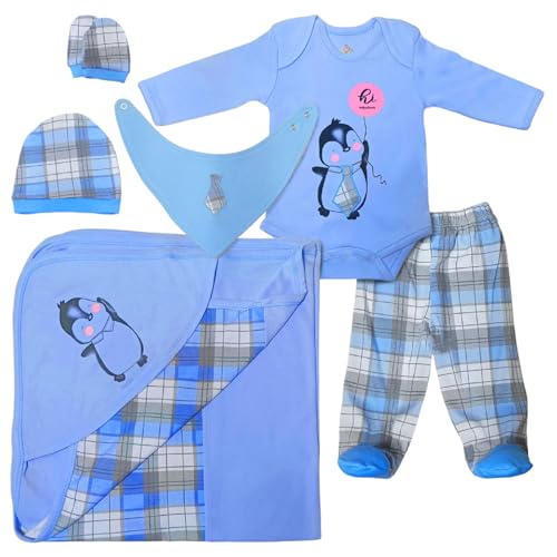 Baby Shoora - طقم قطن مكون من 6 قطع من بيبي شورا من سالوبيت بكباسين بأكمام طويلة وبنطلون ومريلة وجوانتي وطاقية وبطانية بطبعة بطريق للأولاد - متعدد الألوان - 3-6 أشهر
