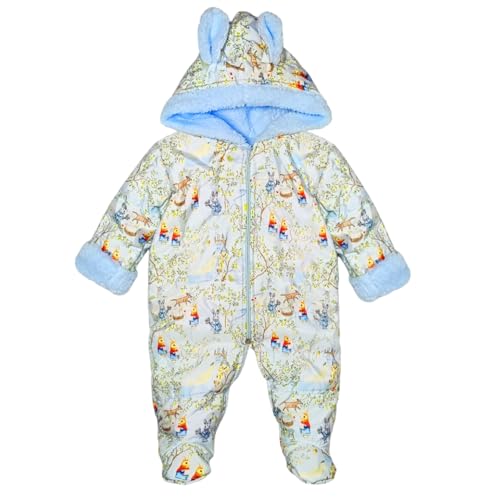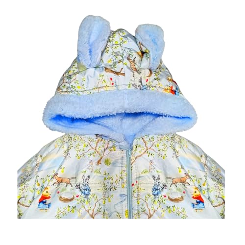 Baby Shoora - سالوبيت بكباسين من الفرو بأكمام طويلة وغطاء رأس وطبعة أرنب للبنات من بيبي شورا، لون بيبي بلو، لعمر 6 إلى 12 شهر