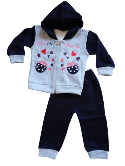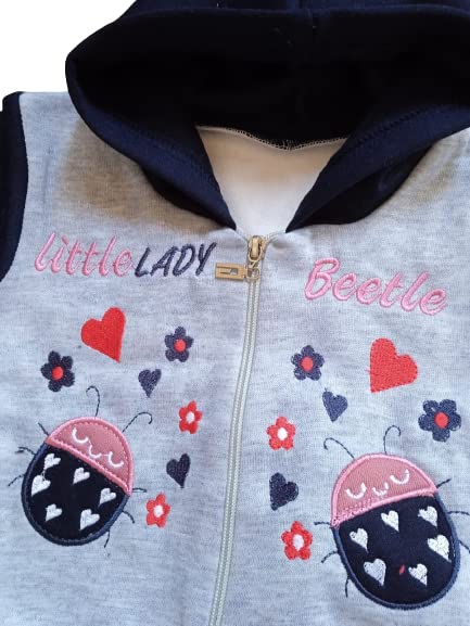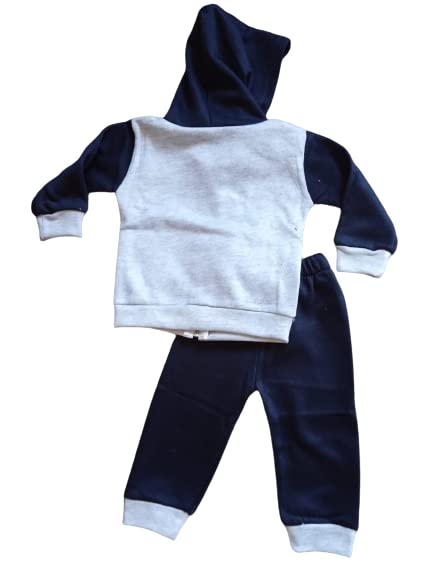 Generic - بيجامة شتوية مطرزة من القطن بغطاء للرأس للاطفال البيبي - رمادي وكحلي (0-6 اشهر)