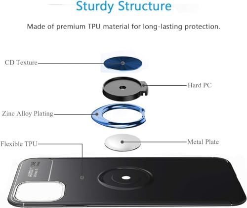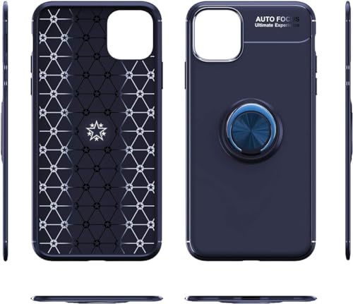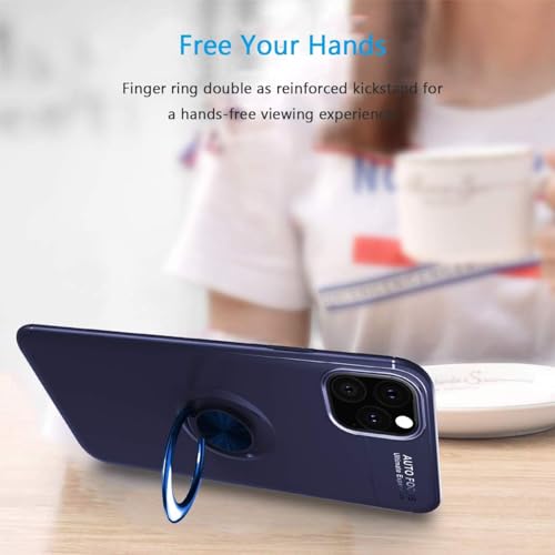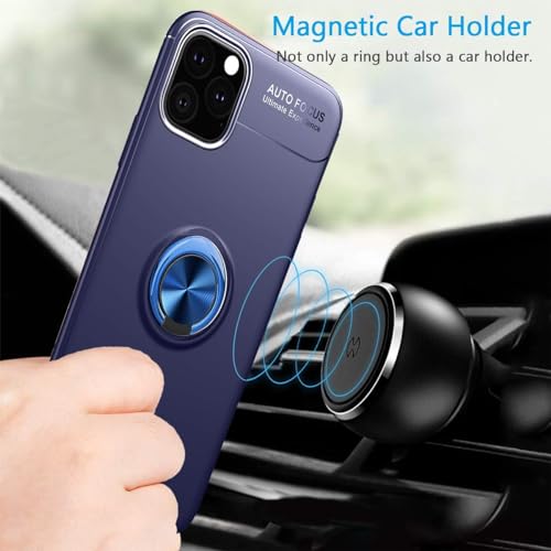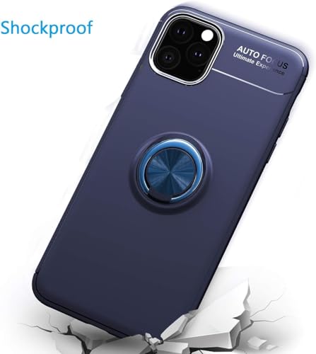 Generic - جراب حماية خلفي من السيليكون بخاصية التركيز التلقائي مع حامل حلقي دوار بزاوية 360 درجة مصمم بقاعدة تثبيت مغناطيسية للسيارة متوافق موبايل ايفون 11 برو مقاس 5.8 بوصة - أزرق