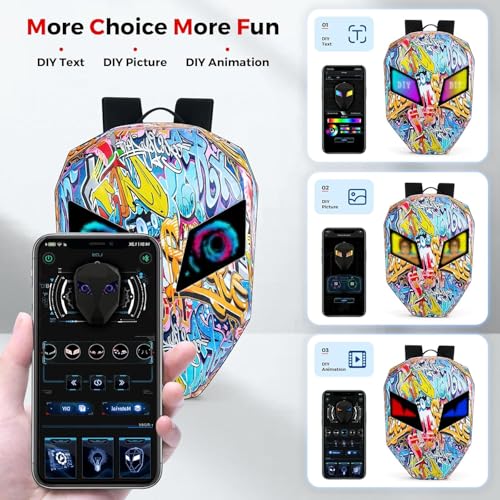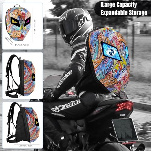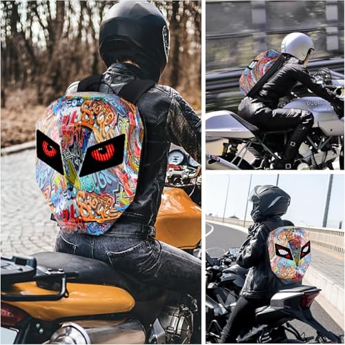 Generic - شنطة ظهر من الياف الكربون بهيكل صلب ثلاثي الابعاد مع عيون LED للدراجات النارية وشاشة رقمية قابلة للبرمجة ومقاومة للماء ومناسبة للسفر والاماكن الخارجية - جرافيتي