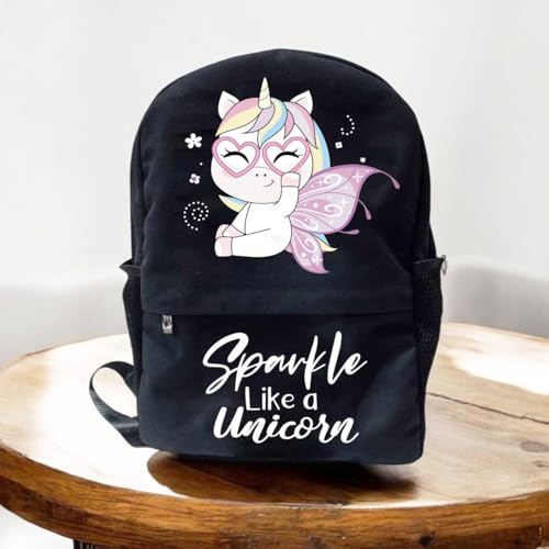 Generic - شنطة ظهر مدرسية كبيرة، شنطة ظهر بنمط يونيكورن، 30 × 40 سم، مع جيبين، هدية للفتيات، هدايا للبنات، تصميم مخصص، لامعة مثل يونيكورن، نحن نطبع
