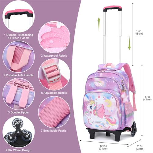 - 【شنطة مدرسية بعجلات للبنات لديها مساحة تخزين كبيرة】شنطة مدرسية للطلاب بعجلات مصنوعة من نسيج النايلون المقاوم للماء مع بطانة بوليستر عالية الكثافة وجيدة التهوية، سحب ثنائي الاتجاه، تصميم متعدد الطبقات، سهلة التخزين لمختلف العناصر التعليمية