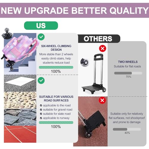 - 【حقيبة ظهر بعجلات للأطفال توفر قيمة ممتازة مقابل المال】شنطة ظهر للبنات المراهقات عالية القوة وأنبوب عربة سميك مصنوع من خليط الألومنيوم بوزن 50 كجم قوي وموثوق به حتى بعد الاستخدام والاختبارات لفترات طويلة