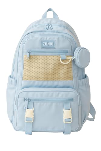 Generic - شنطة ظهر مدرسية مع مساحات تخزين متعددة، ازرق فاتح وبيج، تصميم لوحة شبكية