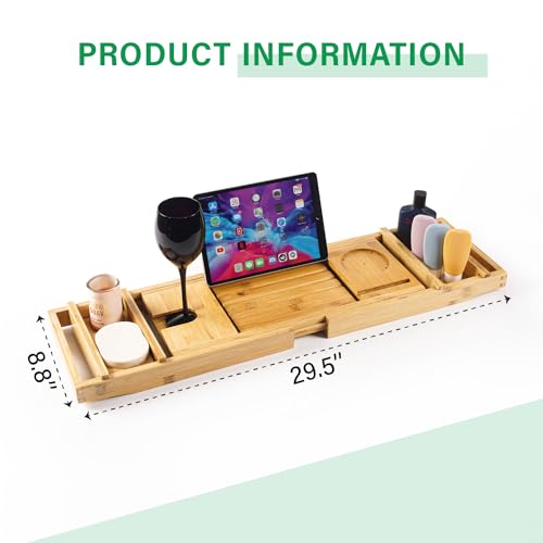 - تصميم رائع - يمكن لصينية الحمام الأنيقة من بامبو التي توضع على حوض الاستحمام الخاص بك أن توفر سهولة الوصول إلى كل ما قد تريده للنقع في المساء. استرخ عقلك وهدئ عضلاتك بعد يوم طويل ومتعب في العمل مع صينية حوض الاستحمام المصنوعة من الخيزران القابلة للتعديل، المصممة لتوفير الهدوء والدفء للاستحمام الفردي أو الرومانسي.