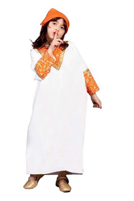 Bambi - عباية مع تطريز ذهبي وتصميم الخط البرتقالي مع سكارف متطابق للبنات من بامبي